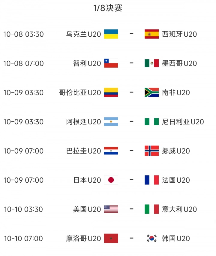 10月06日讯 世青赛(U20寰球杯)16强一起出炉,对阵情况也随之一起揭晓。16强比赛将从10月8日运转进行。