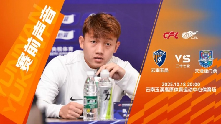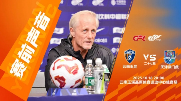 北京时间2025年10月18日20点00分,云南玉溪高原体育认知中心认知场,云南玉昆将与天津津门虎进行中超联赛第二十七轮比赛。
