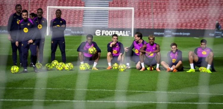 球员们分红三组进行传球锻真金不怕火,之后进行了小场比赛,分为两队:穿绿背心和不穿绿背心,两名中场(德容和奥尔莫)交替。穿绿背心的一方有:费兰-托雷斯、亚马尔、德罗、库巴西、克里斯滕森、巴尔德、卡萨多和埃斯帕特。不穿绿背心的一方有:阿劳霍、埃里克-加西亚(戴着面具)、拉什福德、托尼、伯纳尔、费尔明、巴德吉、莱万和托伦茨。