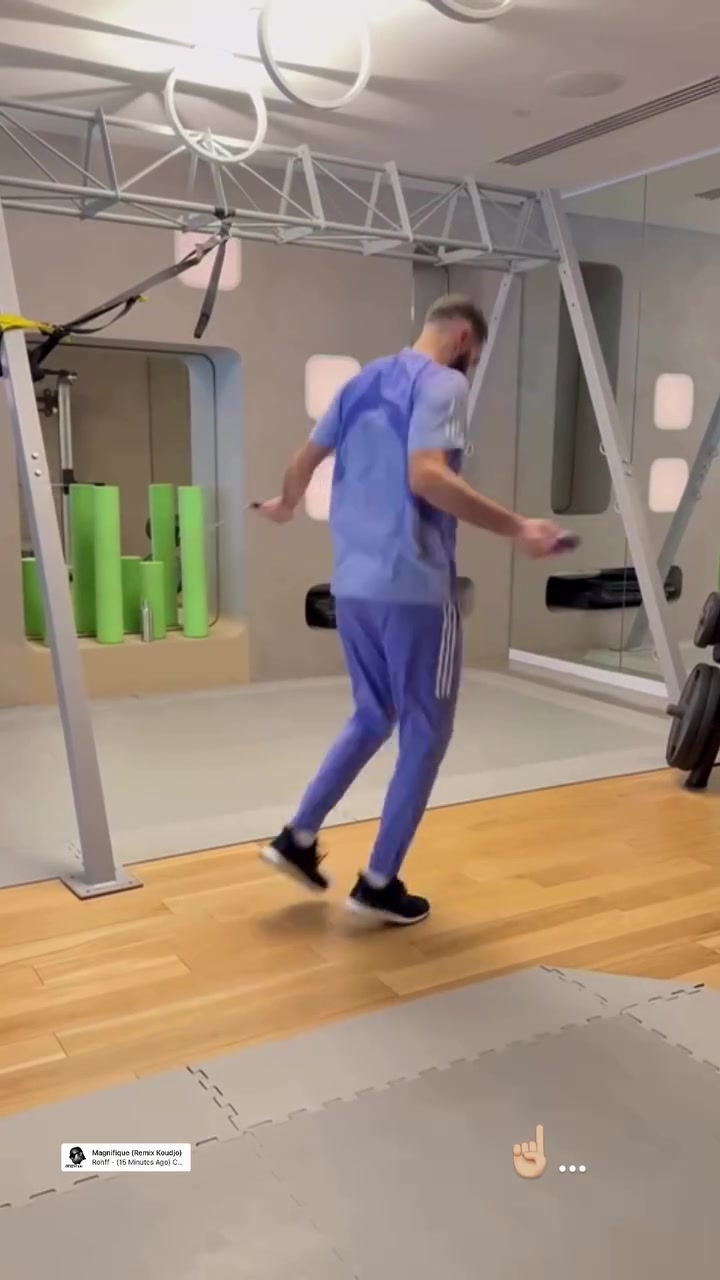 10月3日讯 本泽马更新社媒动态,晒出在健身房内跳绳的视频。