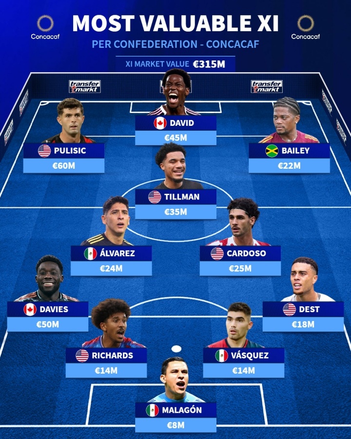 总身价3.15亿!中北好意思最贵阵:普利西奇领衔 戴维斯在列,好意思国5东说念主