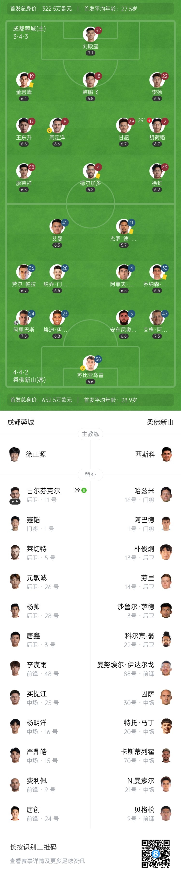 第27分钟,成王人蓉城前场随性球,甘超主罚开到禁区内,李扬头球攻门顶偏了↓