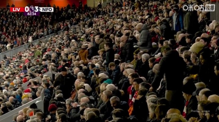 安菲尔德之痛!3球逾期无力回天,赤军球迷80分钟后纷繁运行离场