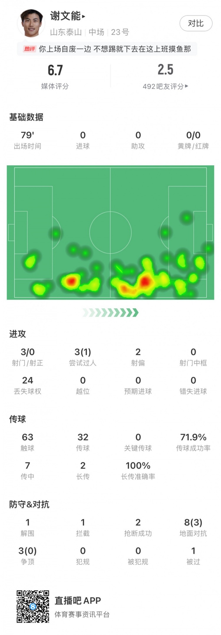 本场谢文能首发出战,直到第79分钟时被彭逸翔换下。在这79分钟里,谢文能屡次传球额外,传球得胜率仅有71.9%,此外他还有多达24次的丢失球权,3次射门无一射中球门边界,3次过东谈主也仅有1次得胜。