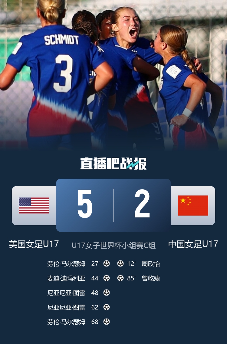 U17女子天下杯-中国2-5好意思国吞首败 周欣怡、曾屹婕天下波难救主