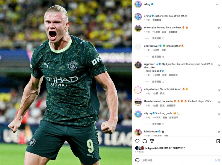 继续12场破门,哈兰德社媒晒照:不外又是普世俗通上班的一天