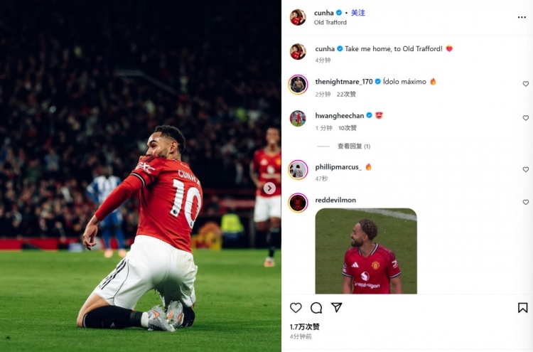 打进处子球!库尼亚社媒晒亲吻队徽照:带我回家,来老特拉福德
