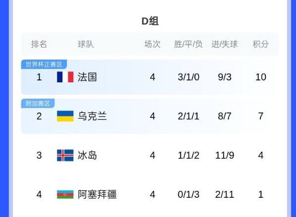 法国赢下乌克兰即可锁定小组头名晋级寰宇杯,若法国战平或输球,则要末轮决定纵贯寰宇杯限额。末轮法国vs阿塞拜疆,乌克兰vs冰岛。