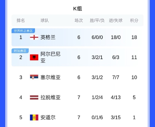 英格兰队一经提前两轮锁定了小组头名,阿尔巴尼亚和塞尔维亚将争夺小组第二的附加赛位置。本轮塞尔维亚若输英格兰且阿尔巴尼亚赢安谈尔,塞尔维亚将无缘附加赛。