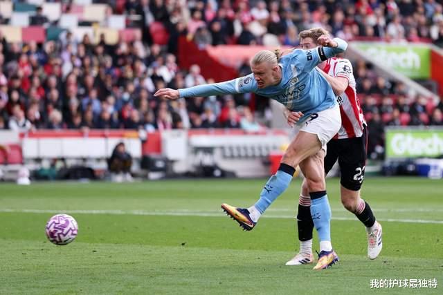 格瓦迪奥而后场长传,哈兰德展现超强的抗击才调,扛开对方后卫杀入禁区,沉稳低射胜利,1-0!