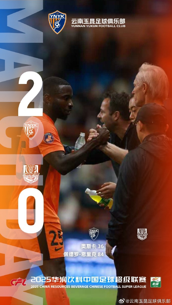 2-0打败津门虎,不仅让云南玉昆12轮事后初度在联赛中零封敌手,也让现场的云南球迷颠倒隆盛,比赛终场哨未响,他们如故迫不足待地念念要庆祝这个号称齐备的秋夜。可贵的3分,也为玉昆临了三轮络续引申“抢分有筹商”成绩了更大的底气。