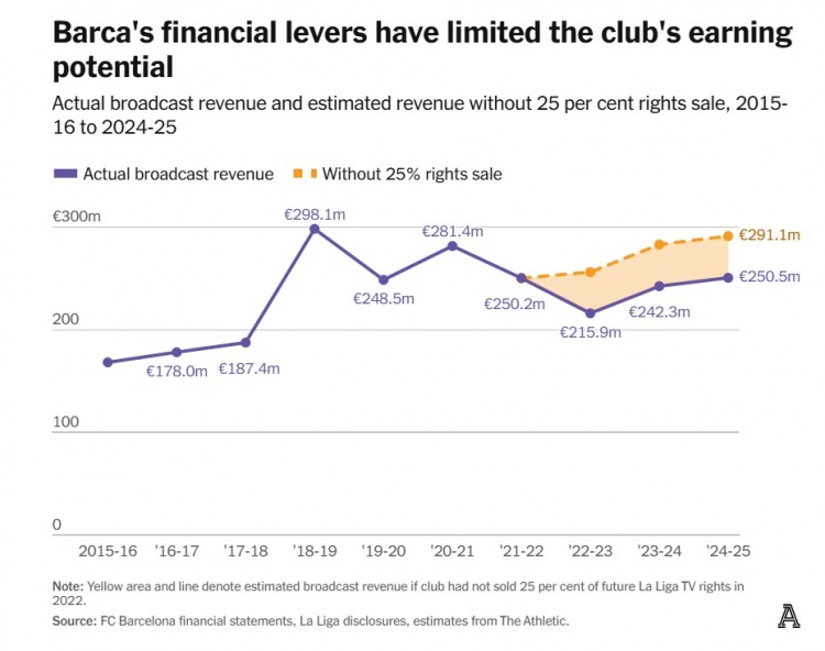 现款注入匡助对消了后一财年近2亿欧元的运营现款赤字。巴萨领有未知成本的回购权,可在25年期限前提早赎回这些权力。但与此同期,出售意味着他们烧毁了可不雅的年度收入。