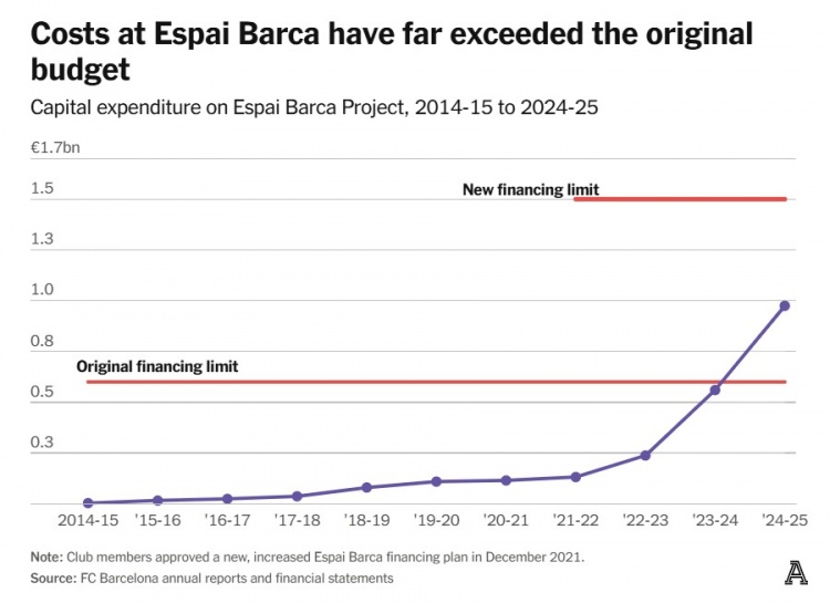 四年畴昔,更正决策再度脱期,资金持续流出:22/23赛季插足1.06亿欧元,次年增至3.22亿欧元,上赛季再投4.15亿欧元。散伙2025年6月,神气老本支拨已达9.75亿欧元(见下图)。后续插足仍将巨大。