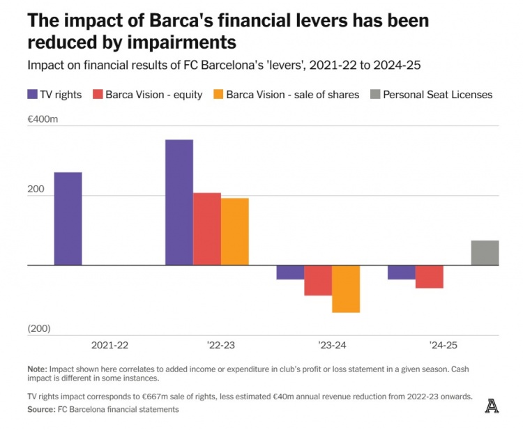 这些杠杆组成巴萨财务图景的要害部分,即便部分操作早在数年前就已出手。它们对诺坎普的财务产生了潜入影响,正如持续进行的翻修工程,让球队暂时告别了这座传说主场。
