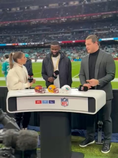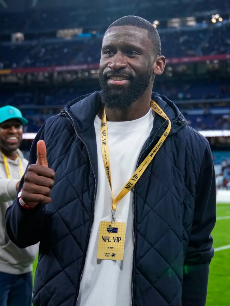 NFL西班牙赛昨晚在伯纳乌球场进行,迈阿密海豚16-13打败华盛顿拓荒官,吕迪格受邀现场不雅看这场比赛,并被请上挑剔席。他在外交媒体上晒出像片,王人达内出镜。
