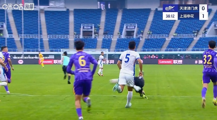 比赛第38分钟,闫炳良开大脚缺点,特谢拉得球胜仗吊门稍许打高。