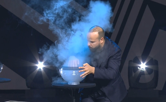 太玄虚😂欧足联请来魔术师,在欧联抽签前上台把球齐变没了